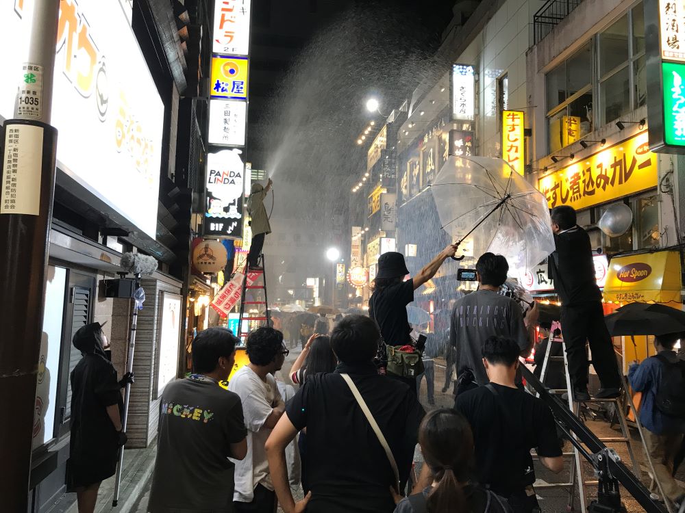 西武新宿駅ペペ前広場では、通勤時間前のわずかな時間を狙ってロケ撮影が行われました。また、新宿駅西口では商店街のご協力の下、深夜に「雨」を降らしての撮影も行いました。